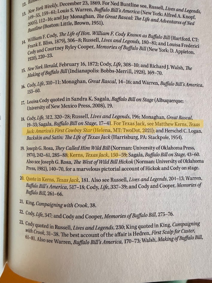 Eight years later, I was as shocked as I am proud to see my own book, Texas Jack: America’s First Cowboy Star, cited in Paul Hutton’s New York Times bestseller, The Undiscovered Country.