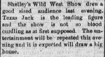 A review in the Fort Wayne Daily News (February 18, 1887) praised the show and noted that “Texas Jack is the leading figure,” describing a lively and well-received performance.