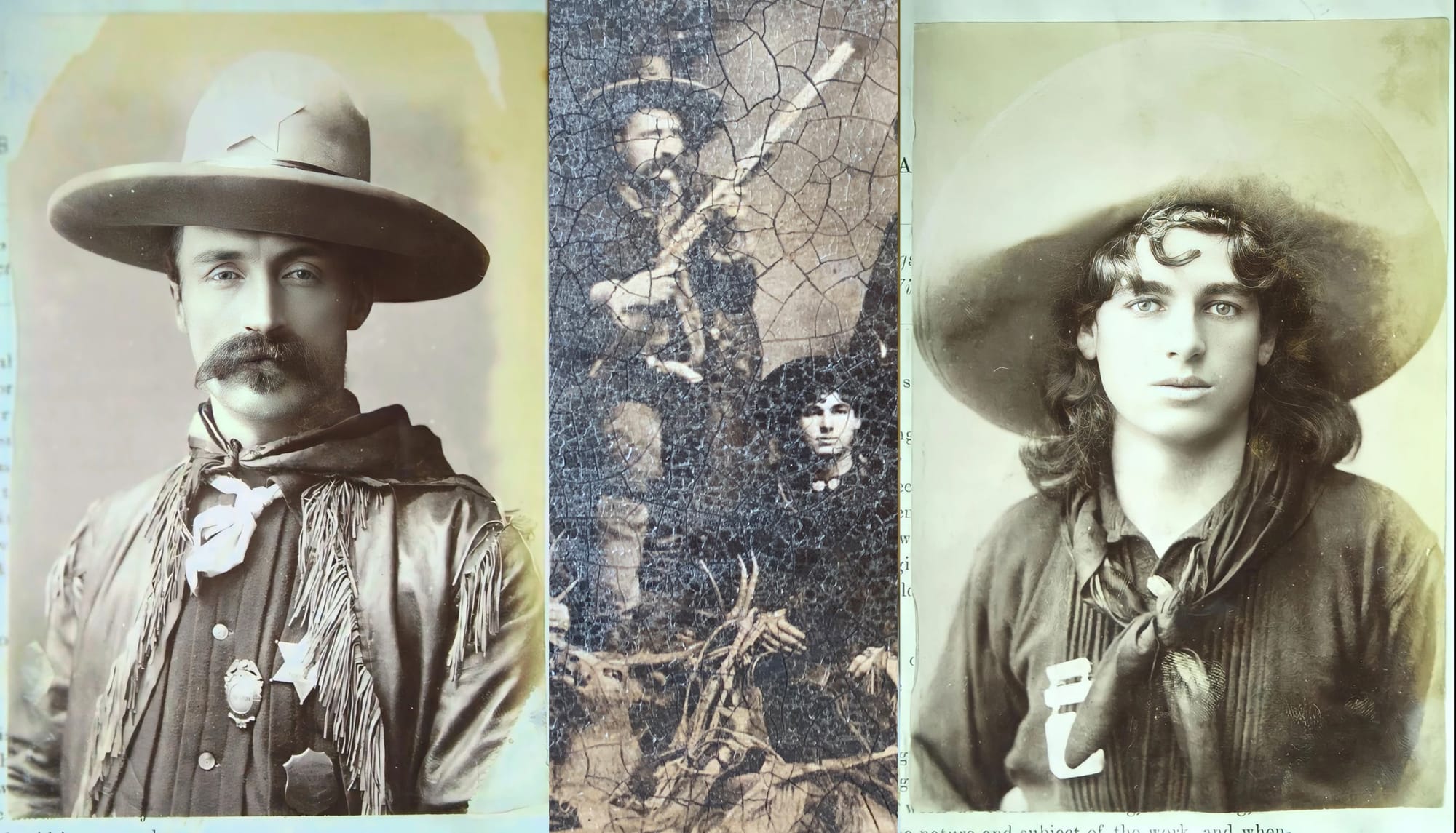 This image is an extraordinary visual link between two generations of frontier showmen: John B. “Texas Jack” Omohundro, who helped invent the cowboy as a national hero, and Texas Jack Junior, who carried that legend across the world’s stages.